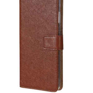 Elegant folio phone case with PU leather finish, card holder slots, magnetic closure, 360° protection, and a built-in stand.