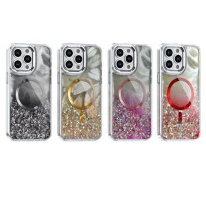 Add sparkle and functionality to your iPhone 17 Pro Max. This protective case features an eye-catching glitter finish and an integrated, rotating MagSafe-compatible metal ring. Use the ring for a secure grip, or fold it out as a convenient kickstand for hands-free viewing.