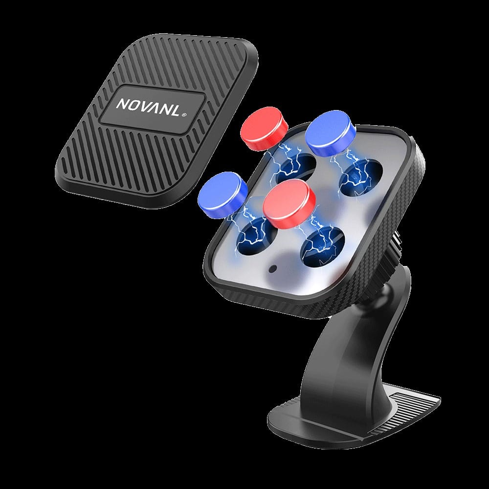 Strong magnetic grip: With the advanced NOVANL MagLock Suction technology, your phone remains firmly attached to the car mount, even during bumpy drives. This ensures your phone stays secure on the smartphone holder without slipping or falling.