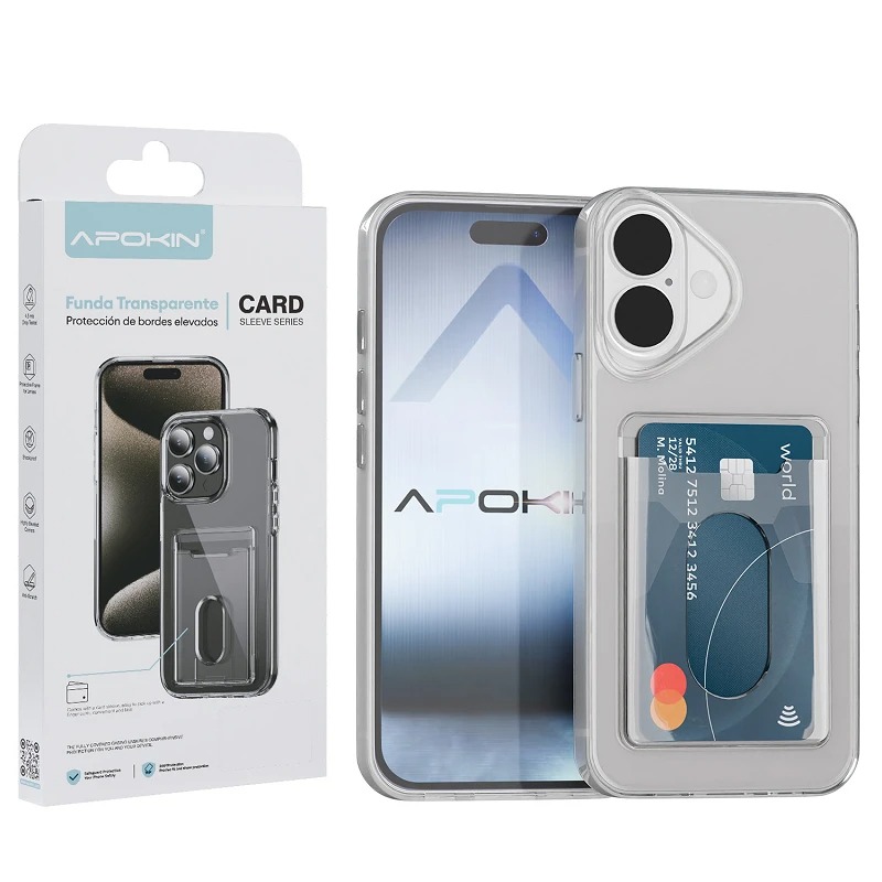 Case Transparent Case with Card Holder for iPhone 16  Apokin, the perfect solution for those looking for protection, functionality, and style in a single accessory. Specifically designed to keep your mobile safe and your cards at hand, this case combines an elegant design with unparalleled practicality.