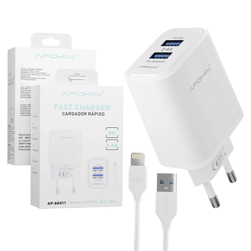Charge two devices at once with the iPhone Dual USB Port Wall Charger, designed for convenience, speed, and safety. Featuring dual USB-A outputs, this adapter allows you to power your iPhone and another device simultaneously. It includes a high-quality Lightning cable, ensuring fast and stable charging for all Apple devices with a Lightning connector. Compact and travel-friendly, the charger features built-in over-current, over-voltage, and short-circuit protection to keep your devices safe. Ideal for home, office, and travel use.