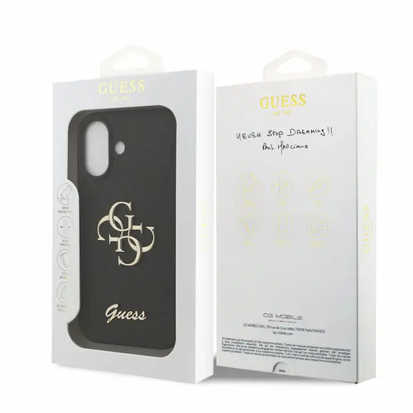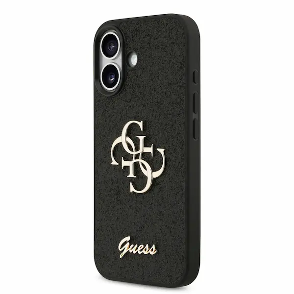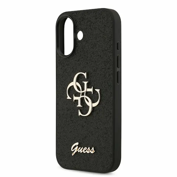 The black Guess back cover features a stunning fixed glitter finish, complemented by a luxurious gold 4G logo and script, making it a chic choice for discerning customers. Its sleek design ensures a perfect fit, while elevated edges around the camera offer additional protection. With precise cutouts for buttons and ports, accessibility is never compromised. The matte texture adds a touch of elegance while maintaining a slim profile.