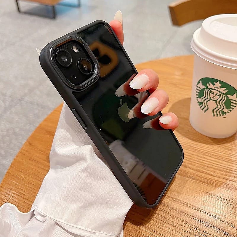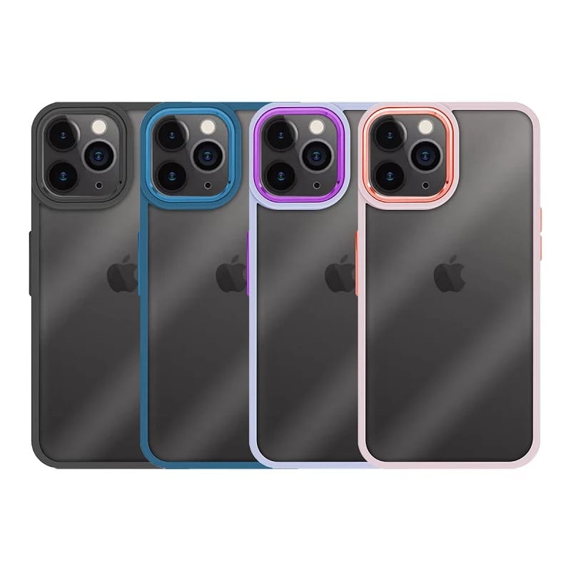Premium case in 6 colors, silicone and smoked methacrylate edge, double thickness, with aluminum buttons and camera bezel.