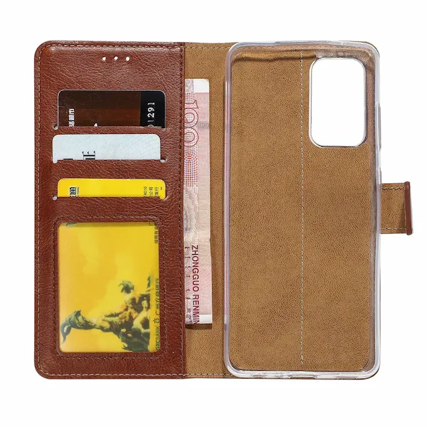 Rixus Bookcase For Samsung Galaxy A22 5G Brown