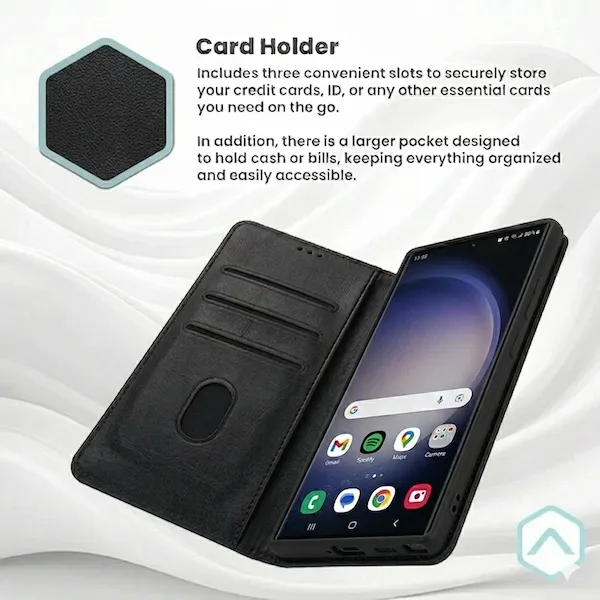 Samsung Galaxy S26 Plus Flip Case – Faux Leather Wallet Cover with Card Holder & Kickstand Black