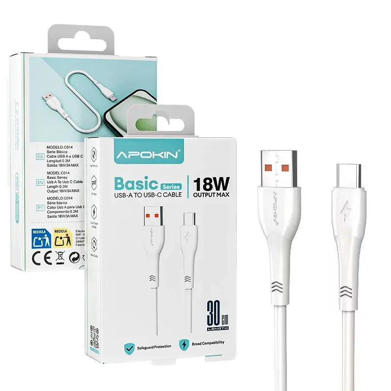 USB-A-A cable Type-C 18W 3A 0.30 Metros White