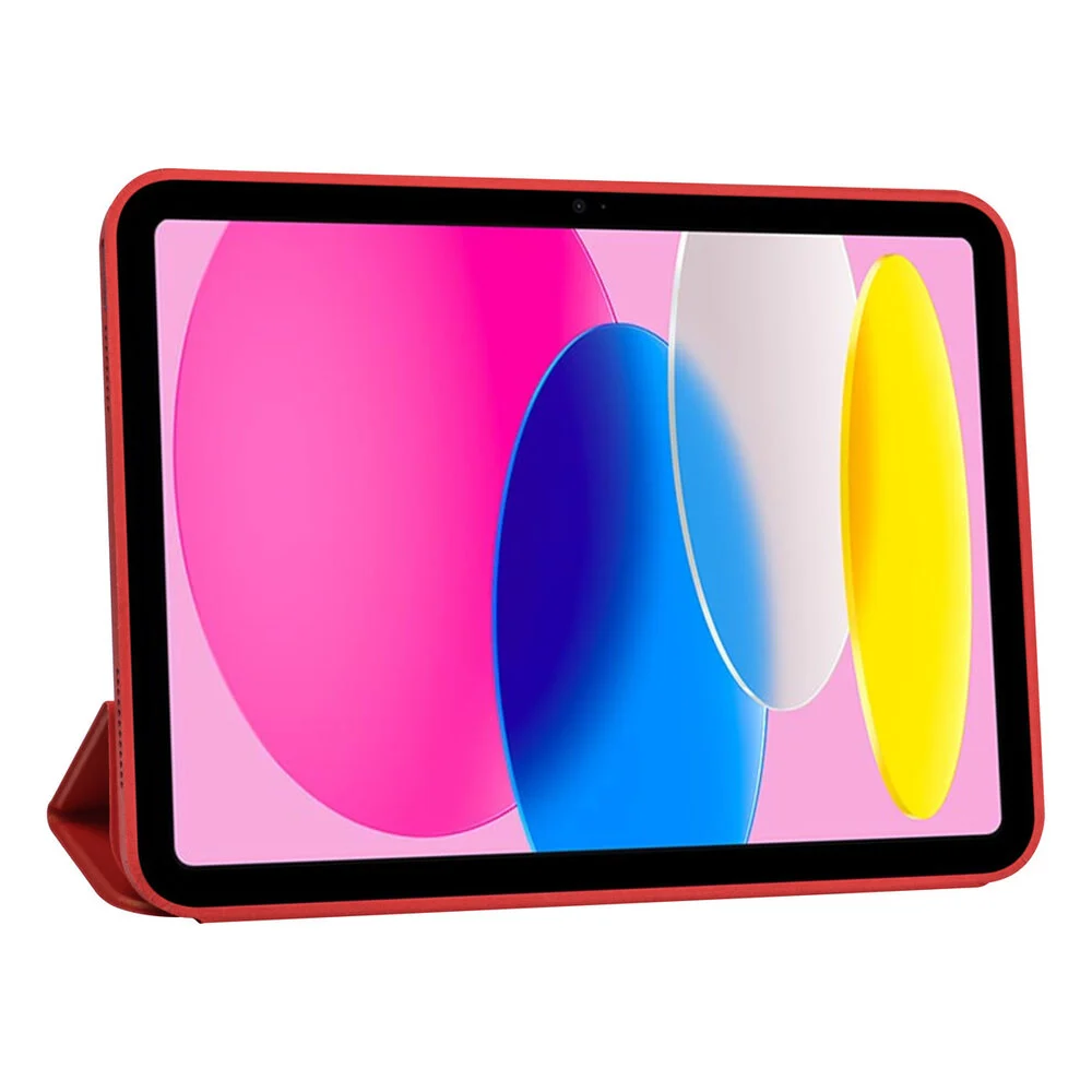 The vibrant pink smart case for the Apple iPad 10.9 (2022) is designed to blend style with essential protection. Its slim profile and multi-position functionality allow users to position their device comfortably for various tasks, whether working, viewing, or browsing.